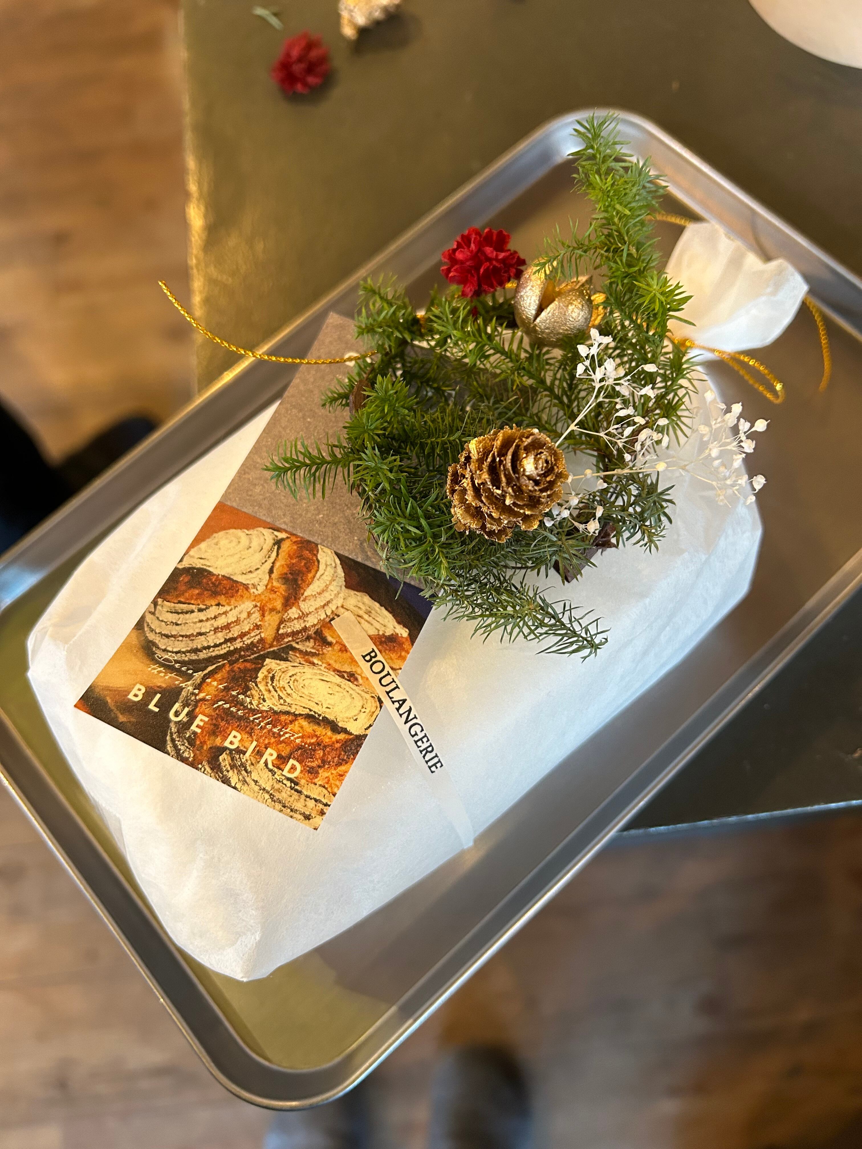 例年同様、今年もアトリエフィユさんの、素敵なドライフラワーのクリスマスプチブーケを添えてご用意致します。